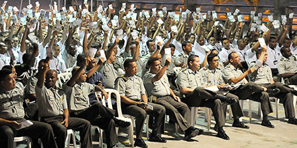 The colonel subsequently launched a national programme, training police in the Bogotá districts of Engativá and Salitre who, in turn, distributed the booklet to concert crowds and university students, at open-air markets in the city of Santa Marta and in the colonial settlement of Villa de Leyva. Ultimately, ten thousand police officers handed out the booklet in 21 cities.